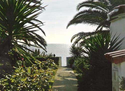 Der Bungalow Nr. 14 bietet von der Terrasse aus einen herrlichen Ausblick auf das Treppengelände zum Kiesstrand und auf das himmelblaue Meer selbst. Der Kiesstrand wird ausschließlich von Gästen der „Surrach“-Siedlung benutzt. Lediglich 30 Meter trennen den Bungalow vom Meer.